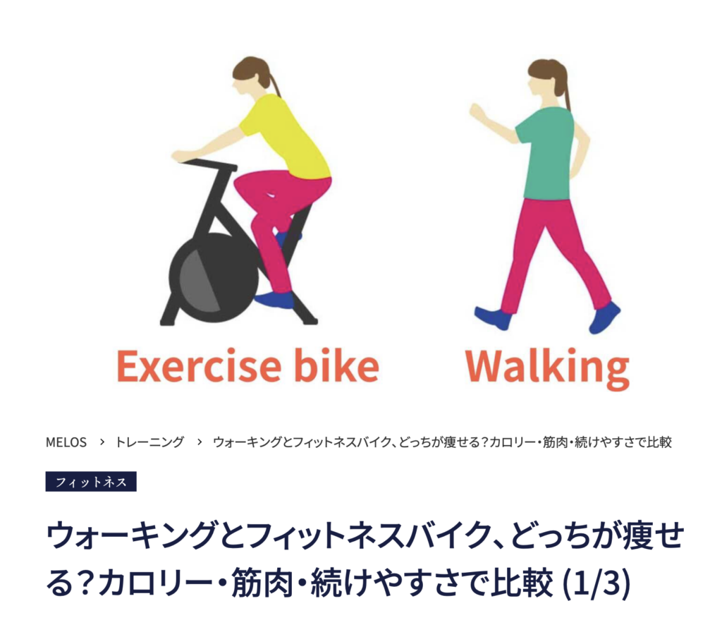 (MELOS)ウォーキングとフィットネスバイク、どっちが痩せる?カロリー・筋肉・続けやすさで比較https://melos.media/training/272017/