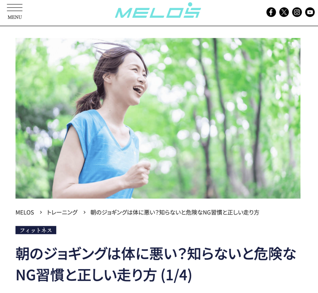 【MELOS監修記事】朝のジョギングは体に悪い?知らないと危険なNG習慣と正しい走り方https://melos.media/training/287237/