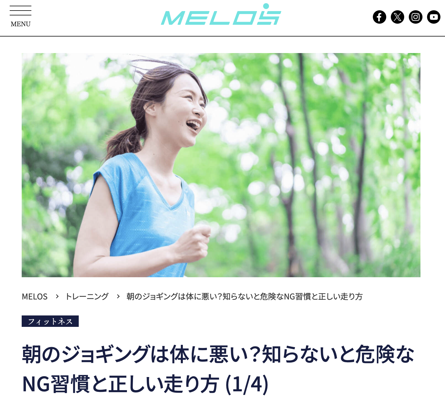 【MELOS監修記事】朝のジョギングは体に悪い?知らないと危険なNG習慣と正しい走り方https://melos.media/training/287237/