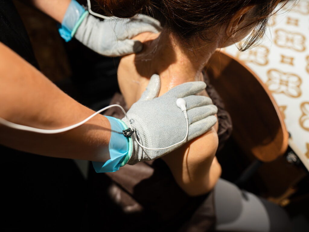 これは、理学療法士の手から特殊な電流を流しながら行います。